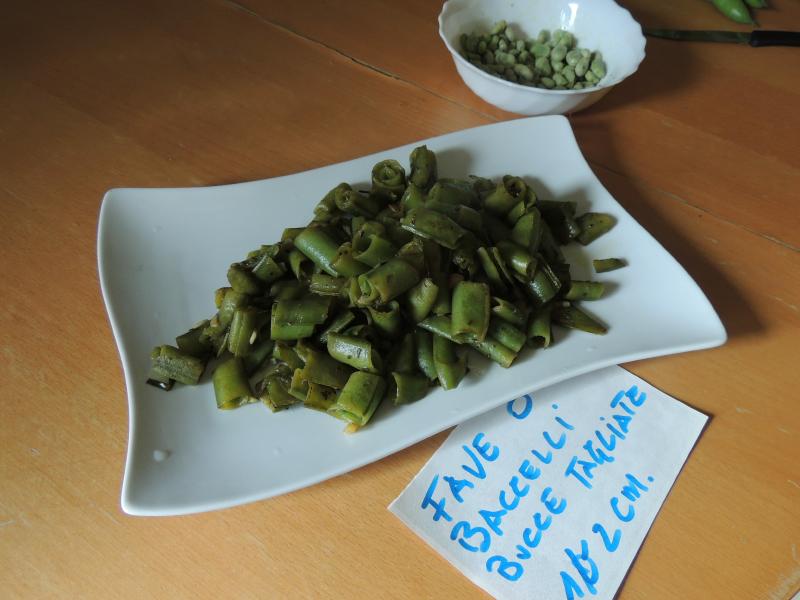 Prendete i baccelli e puliteli come se fossero dei fagiolini, levando la cima e il fondo, dove viene via anche il filo. Con un coltello a punta incidete il baccello lungo la costola e levate i semi, cercando di tenerlo integro. I semi come ben sappiamo sono ottimi crudi accompagnati dal pecorino o in tante altre preparazioni.