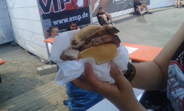 Ammetto di essere un amante della cucina bavarese, perciò già altre volte ho potuto apprezzare tale particolarità, ma questa volta, in quel di Balingen, sono semplicemente rimasto a bocca aperta. Nonostante una minore scelta rispetto a ben altre situazioni più blasonate come, ad esempio, a Wacken nel nord della Germania o a Dinkesbul, la qualità e soprattutto la quantità di quanto offerto riescono a stupire anche il più esigente dei palati.